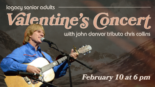 Legacy Valentine Event Tuesday, February 10th at 6:00pm in the Commons Entertainment: Is Chris Collins - A John Denver tribute Cost: $20 and tickets go on sale January 25th...